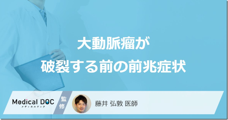 ※この記事はMedical DOCにて『「大動脈瘤破裂」の前兆症状はご存知ですか?破裂すると現れる症状も解説!』と題して公開した記事を再編集して配信している記事となります。