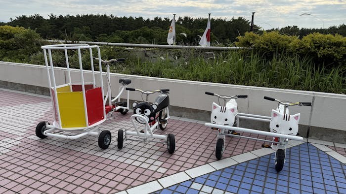 「おもしろ自転車パーク」は、ホテル3階の屋外テラスで体験できるアクティビティ(営業時間:10:00~16:00)。2人以上で乗れる自転車や、さまざまな種類の変形自転車など子供も大人も楽しめます。