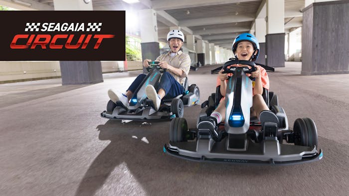 「シーガイア・サーキット」は、最新の電動ゴーカート「セグウェイGokart PRO 2」を日本初導入!コースには衝撃を吸収する専用バリアが設置され、コースアウトの心配もなし。また、2つのコースから選べるので初心者や子供でも安心して体験できますよ。