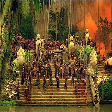 そうしたことを特に強く感じさせられるのは、たぶん、本作の後半、カーツ大佐(マーロン・ブランド)が、ベトナムのヌング川奥地に築いたという「独立王国」の描写が、およそリアリティの無いものであり、「寓話」臭の強いものであったからだ。
