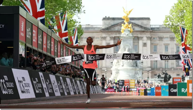 【ロンドン共同】ロンドン・マラソンは26日、ロンドン市街のコースで行われ、男子はセバスチャン・サウェ(ケニア)が1時間59分30秒の世界新記録で2連覇した。従来の記録はケルビン・キプタム(ケニア)が2023年10月にマークした2時間0分35秒で、初の2時間切りとなった。