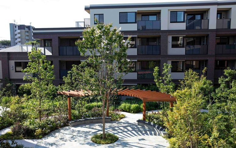 まずは、東京都世田谷区の築50年超の大規模団地建て替えで再生した「アトラスシティ千歳烏山グランスイート」のケースです。2025年7月に竣工し、7月23日にメディア向けの内覧会が行われました。