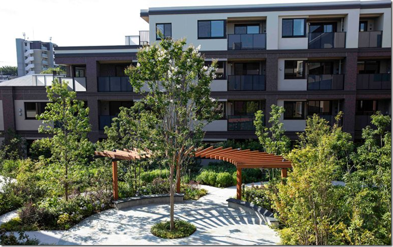 杜ノ棟中央に設置された中庭。ここはマンション住人専用の共用施設(写真撮影/片山貴博)