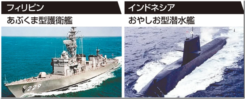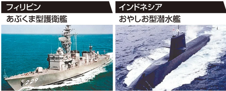 同志国では、自衛隊の中古装備品に関心が集まっている。フィリピンは、就役から30年以上が経過した海上自衛隊「あぶくま型」護衛艦(順次退役予定)の導入を検討している。中古護衛艦の輸出が実現すれば、初の事例になるとみられる。インドネシアは、中古の「おやしお型」潜水艦の導入に意欲があるとされる。ただ、「高値で中古品を買う財政的な余裕がない国が多い」(防衛省幹部)ことが課題となっていた。