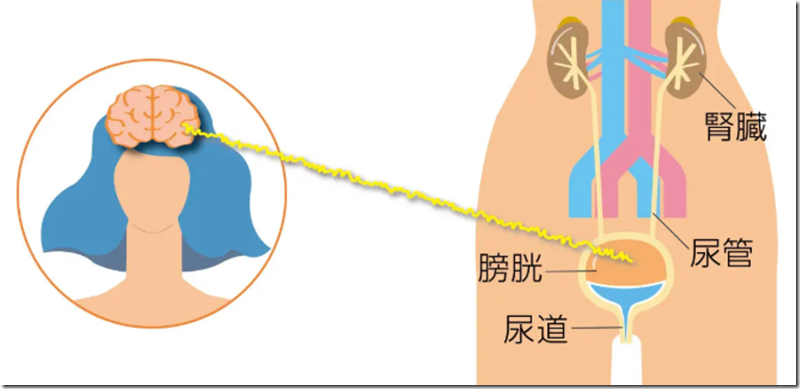 腎臓で作られた尿は、尿管を通り、膀胱にためられます。尿が膀胱にある程度たまると、その信号が大脳へ伝えられ、尿意として感知。トイレで出す準備ができると、脳からの信号で膀胱の筋肉が収縮し、尿道が開いて排出されます。