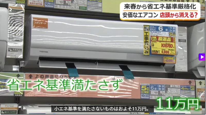この影響で現在、販売されている価格の低いエアコンの多くは基準を満たせなくなり、店頭から姿を消す可能性があります。