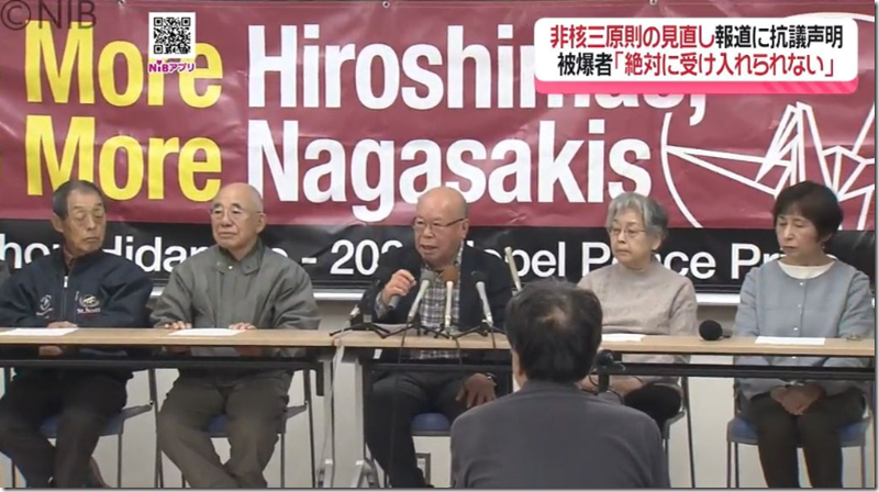 声明では非核三原則の見直しについて “絶対に受け入れることはできない” として「戦争被爆国として、どんな困難があっても核廃絶を主導すべきで、核廃絶の旗を降ろしてはならない」などと訴えています。