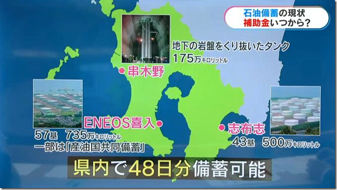 仮に全てのタンクを満タンにすると、県内だけで48日分を備蓄できる計算になります。
