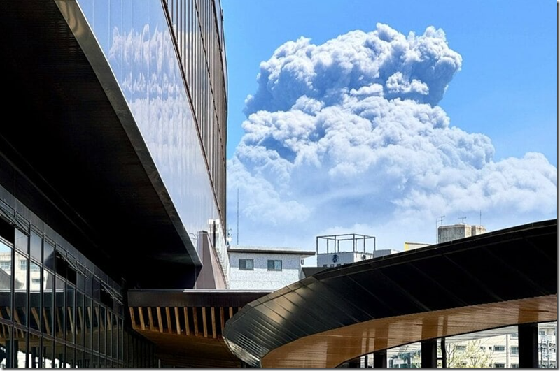 「鹿児島県民はこれが日常なのか、驚かないのか?というコメントも来ますが、こんな感じでいつも通りです。ただ、風向きだけはチェックします」そんなコメントとともに投稿されたのは1枚の写真。