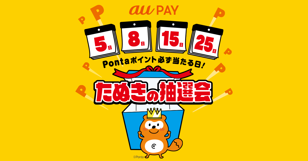■③ au PAY:たぬきの抽選会で最大3,000Pontaポイントが当たる