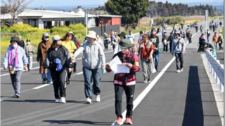 20日の開通を前に、真新しい吾平道路を思い思いのペースで歩く参加者=15日、鹿屋市吾平鹿児島県は17日の県議会総合政策建設委員会で、県が整備を進める高規格道路「大隅縦貫道」のうち、鹿屋市吾平から錦江町田代の国道448号まで16キロを結ぶ「吾...